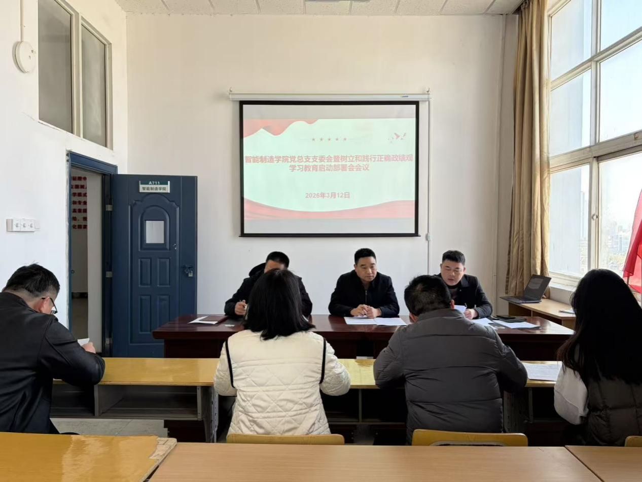 按照学校树立和践行正确政绩观学习教育启动部署会要求,2026 年 3 月 12 日下午,智能制造学院党总支在青山湖校区 A711 教室先后召开党总支支委会暨树立和践行正确政绩观学习教育启动部署会、意识形态安全专题会议。会议由学院党总支副书记兼副院长罗德华同志主持,党总支委员及教师党支部、学生党支部委员参加会议。